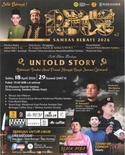 Ia juga menyoroti adanya sesi “Talkshow Budaya” yang menghadirkan H. Yuhendri (Long Hendri) dari MABM, yang mengisahkan tradisi masyarakat Sambas sejak awal puasa hingga Hari Raya pada masa lalu.